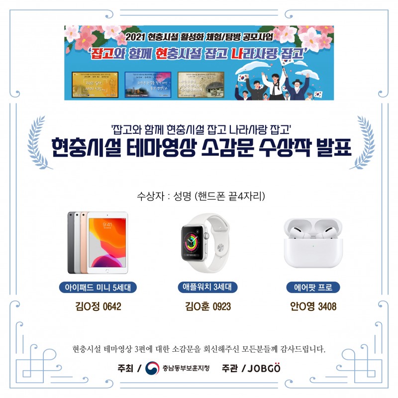 잡고(JOBGo)에서 주관한 "현충시설 테마영상 소감문" 우수작 발표