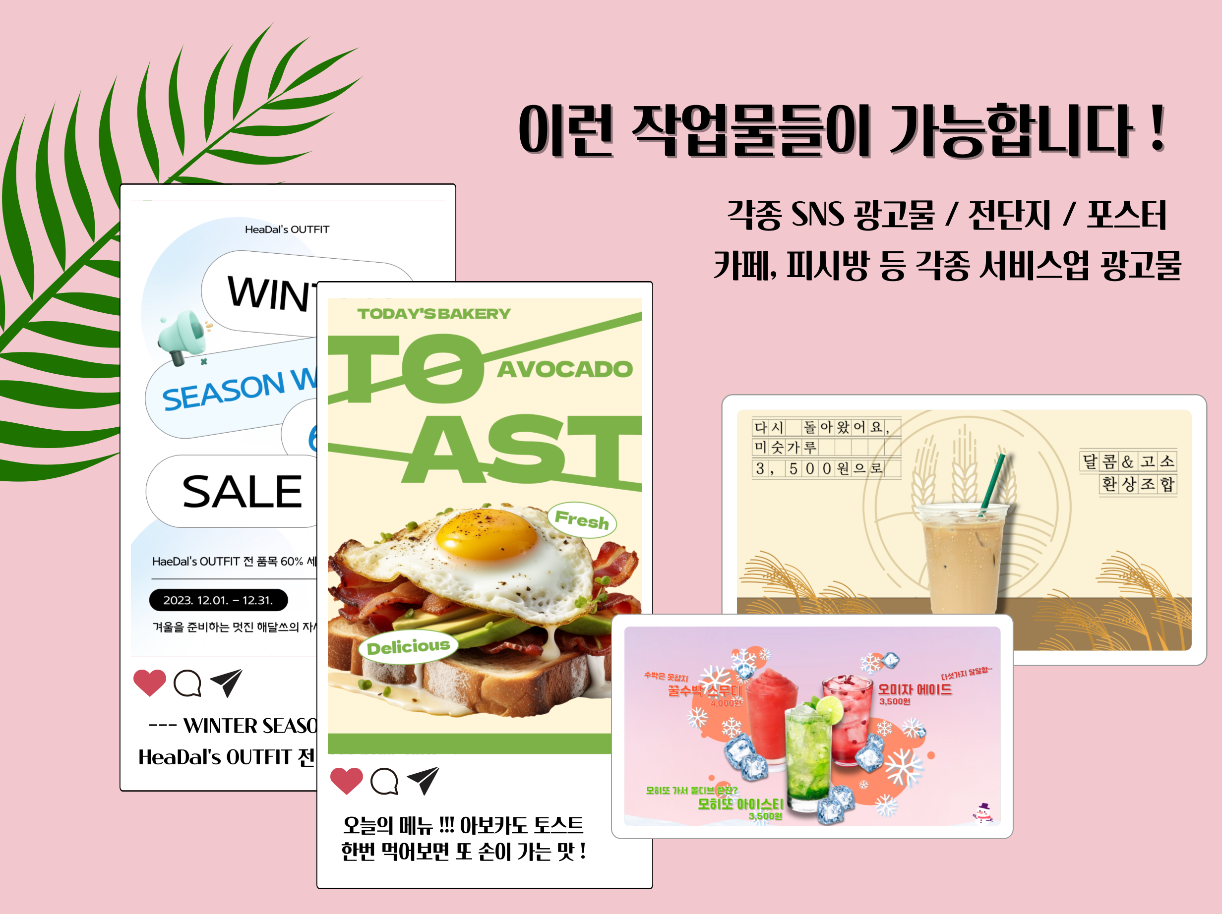 디자인전체 전체 패키지 일러스트, 캐리커쳐 블로그, SNS, 썸네일 인쇄, 홍보물 상세, 이벤트페이지 로고 브랜딩 전체 재능상품입니다. 전체 재능상품입니다. BMBRS 서핑보드 그래피티 2 495,000원 ~ 어우skjduj 중3이 디지털 그림 그려드려요~ 2 10,000원 ~ DSDDNK 귀여운 반려동물 그려드려요 2 10,000원 ~ DSDDNK 과일,디저트류 그림 그려드려요 ???? 2 10,000원 ~ 루나샵 인스타그램 계시물 만들어 드립니다 2 10,000원 ~ 용복 반려동물 캐릭터 만들어드립니당???? 2 10,000원 ~ 해달쓰 간단한 프로필, 광고물 제작해드립니다 ( ੭ ・ᴗ・ )੭ 2 10,000원 ~ 유지니 드로잉 스케치해드려요 2 10,000원 ~ 바킁비 그림 그려드립니다! 2 10,000원 ~ 연지곤지 볼빵빵 캐릭터☺️ 2 10,000원 ~ 조물주 하나뿐인 그림 그려 드립니다 2 10,000원 ~ 피알컴 인테리어 전문 1 200,000원 ~ 윤영현 굿잡아이디어 공모전 1 10,000원 ~ 세트레토 글씨커미션,로고디자인 해드립니다 시안은4만원에 5개입니다 1 40,000원 ~ adiadas 일러스트/로고디자인/라인드로잉 (미술입시준비중) 1 10,000원 ~ 상상치못한정체 개인 캐릭터, 이모티콘 제작 해드립니다~ ^^7 1 10,000원 ~
